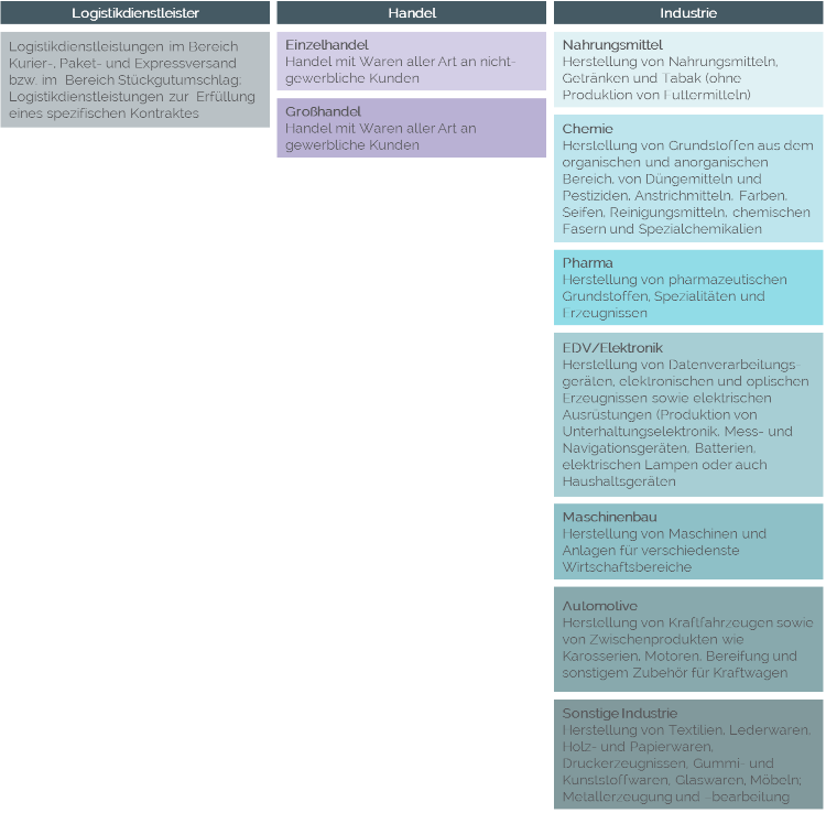 Neben der funktionalen Attraktivität eines Standortes für eine spezifische Logistikaufgabe ist auch die Branche und die damit verbundenen Anforderungen eines Nutzers an die Logistikimmobilie und ihren Standort ein entscheidendes Differenzierungsmerkmal.
